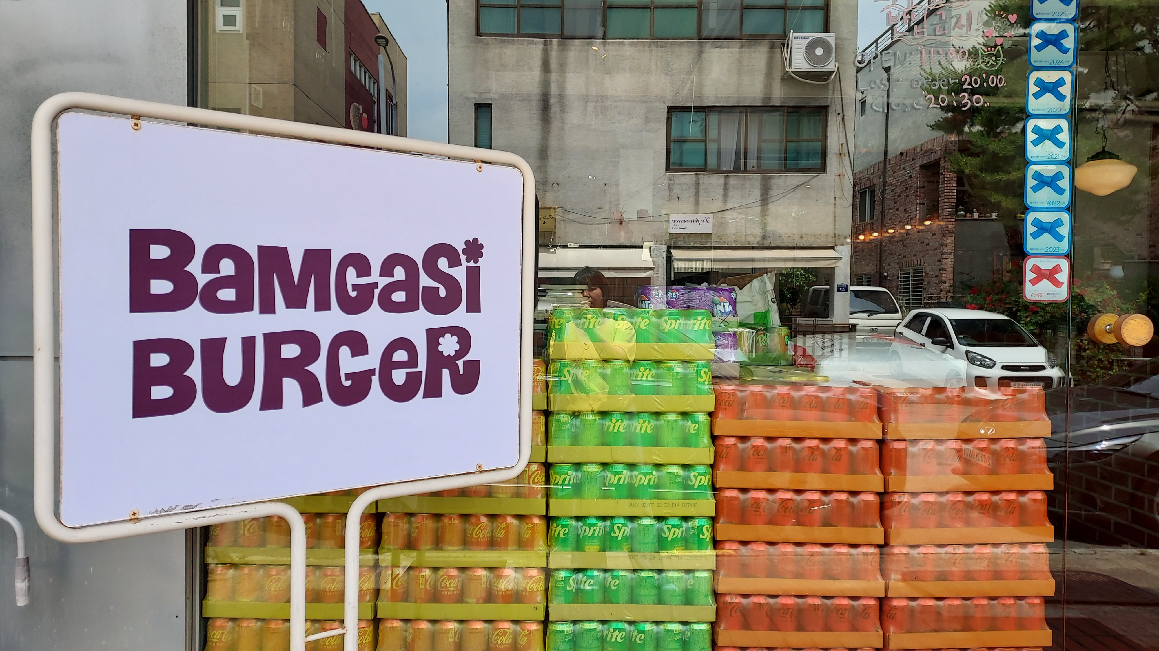 매장 입구부터 알록달록 음료박스 쌓여있고요,